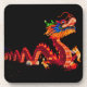 Glowing Chinese Parade Dragon. This dragon is glowing orange and red with blue and green at the top. The background is black it almost looks like it is floating.