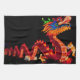 Glowing Chinese Parade Dragon. This dragon is glowing orange and red with blue and green at the top. The background is black it almost looks like it is floating.
