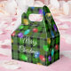 This festive design features glowing Christmas lights on a green tartan plaid.