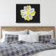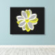 This awesome canvas print features a digital image of a daisy flower with white and yellow coloured petals with a yellow centre. The petals look like they are glowing with a beautiful reflective quality. The flower is on a black background for maximum contrast and the result is stunning.