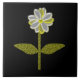 This awesome tile features a digital image of a daisy with a green stem with two green leaves on it and white and yellow coloured petals with a yellow centre. The petals look like they are glowing with a beautiful reflective quality. The flower is on a black background for maximum contrast and the result is stunning.