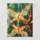 As a golden, glowing fairy flies through a forest, her reflection shines below her in the lake. Her wings are transparent except for golden, ornate sections, and though her bright glow obscures her facial features, your can tell she is beautiful! This postcard is perfect for anyone who loves fairies and/or fantasy designs! (A.I. generated)