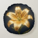 Glowing golden lily flower round cushion