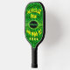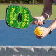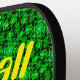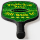 Unique shining green star fractal design that shimmers against a black background makes cool pickleball equipment. Modern stylish all-over print design. Brilliant shades of green. Custom name and text. Glowing pickleball star - dill with it! Shimmering positive sports vibes. Original art and design by Anura Design Studio.