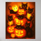 A whimsical Halloween poster featuring curious black cats nestled among glowing jack-o’-lanterns. With warm golden light and playful feline expressions, this enchanting artwork blends charm and spookiness, making it a perfect seasonal decoration for cat lovers and Halloween enthusiasts alike.