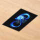 Luminous infinity symbol with glowing, beautiful, lushly blooming rose made of blue flames on black background.