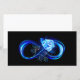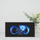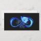 Luminous infinity symbol with glowing, beautiful, lushly blooming rose made of blue flames on black background.
