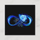 Luminous infinity symbol with glowing, beautiful, lushly blooming rose made of blue flames on black background.