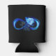 Luminous infinity symbol with glowing, beautiful, lushly blooming rose made of blue flames on black background.