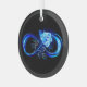 Luminous infinity symbol with glowing, beautiful, lushly blooming rose made of blue flames on black background.
