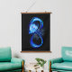 Luminous infinity symbol with glowing, beautiful, lushly blooming rose made of blue flames on black background.