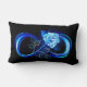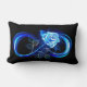Luminous infinity symbol with glowing, beautiful, lushly blooming rose made of blue flames on black background.