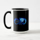 Luminous infinity symbol with glowing, beautiful, lushly blooming rose made of blue flames on black background.