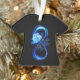 Luminous infinity symbol with glowing, beautiful, lushly blooming rose made of blue flames on black background.