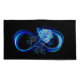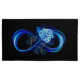 Luminous infinity symbol with glowing, beautiful, lushly blooming rose made of blue flames on black background.