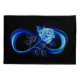 Luminous infinity symbol with glowing, beautiful, lushly blooming rose made of blue flames on black background.