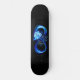 Luminous infinity symbol with glowing, beautiful, lushly blooming rose made of blue flames on black background.