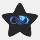 Luminous infinity symbol with glowing, beautiful, lushly blooming rose made of blue flames on black background.