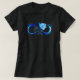Luminous infinity symbol with glowing, beautiful, lushly blooming rose made of blue flames on black background.