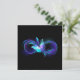 Infinity symbol with magical, purple glowing butterfly with transparent wings, on black background. Glowing butterfly.