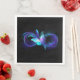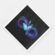 Infinity symbol with magical, purple glowing butterfly with transparent wings, on black background. Glowing butterfly.