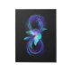 Infinity symbol with magical, purple glowing butterfly with transparent wings, on black background. Glowing butterfly.