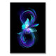 Infinity symbol with magical, purple glowing butterfly with transparent wings, on black background. Glowing butterfly.