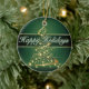 Our happy holidays design features a Christmas tree made of glowing gold lights and a gold swirl garland set on a rich green background. This modern holiday theme is a classy way to wish your family and friends a glowing holiday season and a promising New Year.