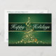 Our happy holidays design features a Christmas tree made of glowing gold lights and a gold swirl garland set on a rich green background. This modern holiday theme is a classy way to wish your family and friends a glowing holiday season and a promising New Year.