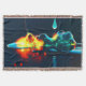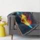 A quality printed throw has its advantages. This is a much finer weave throw than its loopier cousins, and though lighter, it is worth the investment for custom room accessorizing. The back is much prettier than the typical brown, and the fringe on the long sides very vivid, the selvage nicely done. Before photographing, I washed the throw in cold water, delicate, with a thicker woven throw the same size. On tumble dry low, this throw was dry in half the time as the other. This is a very practical quality if you use throws for furniture covers or to wrap up in frequently. The sleekness of the fabric makes it a great layer for accenting or protecting without the feeling of sitting on too much stuff. Perfect for napping or when you feel a light chill coming on. The color printing is beautiful and on this fabric, matched the design and color of my Photoshop image. This is an advantage for blending room fabrics and colors. The fringe on the short sides prints the colors from the design image and therefore varies from the side fringe. I streaked a white fractal line through the plaid pattern to give the illusion of weaving. This printed as crisp as an illusory thread, and put some white in the short side fringe, showing another advantage of print vs loomed- for artistic purposes, line lines, detail, and color integrity can be planned and preserved. My loomed throws have color limitations and more of a needlepoint texture. Print throws reproduce an exact image. The throw felt a little stiff straight out of the package, but this went away in the first delicate wash. Of course I searched the wash water for ink or bleeding and there was none.