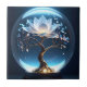Adorn your space with a touch of serene beauty. This exquisite ceramic tile features a stunning digital illustration of a luminous white lotus flower tree blossoming within a clear glass globe, set against a deep, ethereal blue background. The glowing lotus symbolises peace, spirituality, and inner tranquillity, creating a captivating focal point.