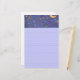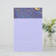 Stationery with faint grey lines and elegant vintage art of a glowing crescent moon and stars against a dark blue sky etching.