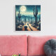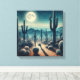 Glowing Moonlit Desert with Cactus and Fireflies Canvas Print