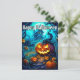This unique Happy Halloween postcard features an illustration of some spooky glowing pumpkins, in the forest, after dark. Please feel free to adjust all the available options as you wish.