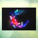 Fluttering in circle, luminous, bright, neon night butterflies on black, luminescent background. Night butterflies.