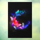 Fluttering in circle, luminous, bright, neon night butterflies on black, luminescent background. Night butterflies.