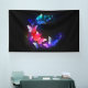 Fluttering in circle, luminous, bright, neon night butterflies on black, luminescent background. Night butterflies.