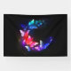 Glowing Neon Night Butterflies on Black background Banner