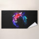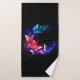 Glowing Neon Night Butterflies on Black background Bath Towel
