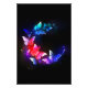 Fluttering in circle, luminous, bright, neon night butterflies on black, luminescent background. Night butterflies.