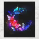 Fluttering in circle, luminous, bright, neon night butterflies on black, luminescent background. Night butterflies.