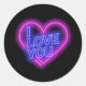 Glowing Neon Pink Blue Valentines Heart Classic Round Sticker