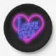 Glowing Neon Pink Blue Valentines Heart Large 9" Paper Plate