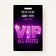 Stand out with this sparkling VIP All Access badge, designed with a bold glowing pink/purple finish. Perfect for music festivals, nightclubs, private parties, and glamourous events, it ensures your most important guests get the recognition and access they deserve.