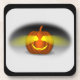 This design features an orange pumpkin that seems to be glowing in the dark. A candle lights up the eyes and a smile. A dark shadow is seen behind and to the sides of the pumpkin. A black border was added. These coasters come in round or square.