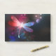 Glowing, flying, red dragonfly, with transparent, detailed wings on dark, nocturnal, luminous background with tropical plants and fireflies. Red dragonfly.