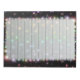 Softly glowing brightly coloured rainbow stars on a dark space background. A frame of glowing colourful star lights has a lightened writing area inside that is lined. An original digital artwork.