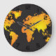 Glowing World Map in Orange and Yellow Large Clock
