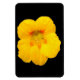 This awesome magnet features a photo of a pretty yellow nasturtium flower that glows brightly. It is shown against a black background.