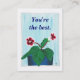 Artistic, red and white gloxinia flower in a blue flower pot, with a placeholder for your text, is printed on chubby business cards. The text says, You're the best, and can be customised. Thank you for shopping at CherylsArt on Zazzle.